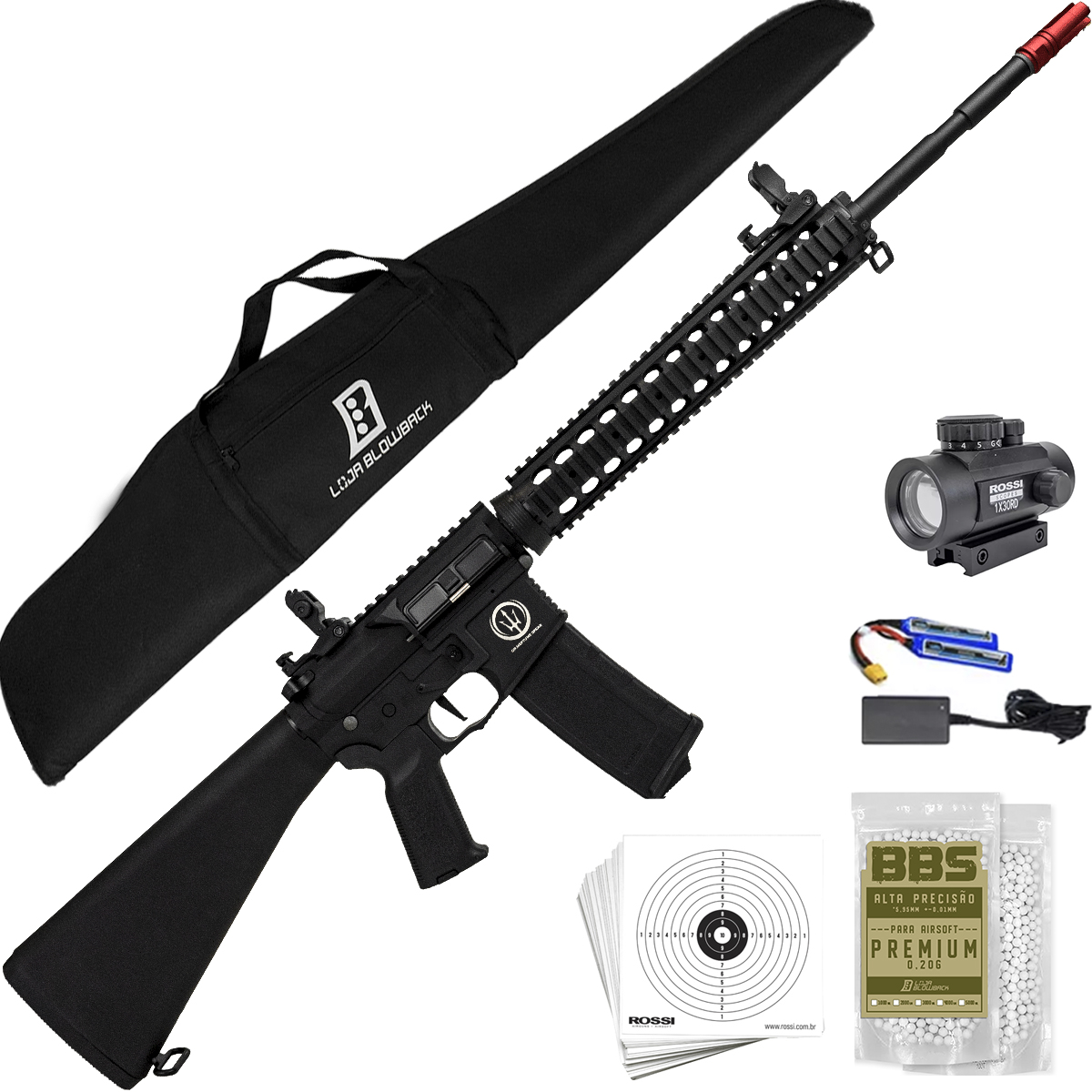 Apresentamos a Rossi AR15 Neptune DMR Plus, ideal para jogadores de airsoft que buscam aprimorar seu desempenho em jogos e competições com um equipamento de alta qualidade e versatilidade.