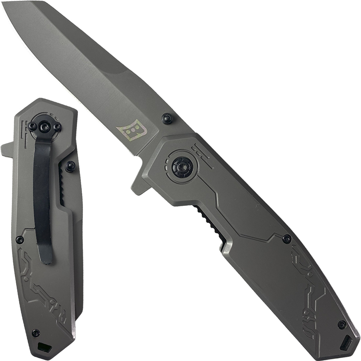 A lâmina do Canivete Tático Blowback é fabricada em aço inoxidável, garantindo resistência à corrosão e longa durabilidade, mesmo nas condições mais adversas. Com um comprimento de 9 cm, oferece a dimensão ideal para cortes precisos e eficientes.