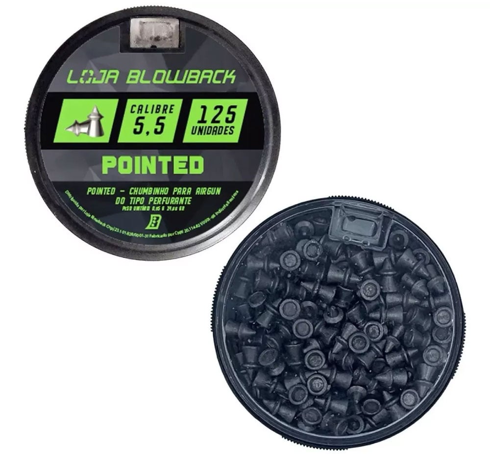 Os chumbinhos Loja Blowback possuem um excelente peso e desempenho por ter uma forma aerodinâmica, proporcionando uma ótima potência no disparo e um grande poder de impacto por conta do seu formato. É recomendado para tiros de curta, média e longa distância.