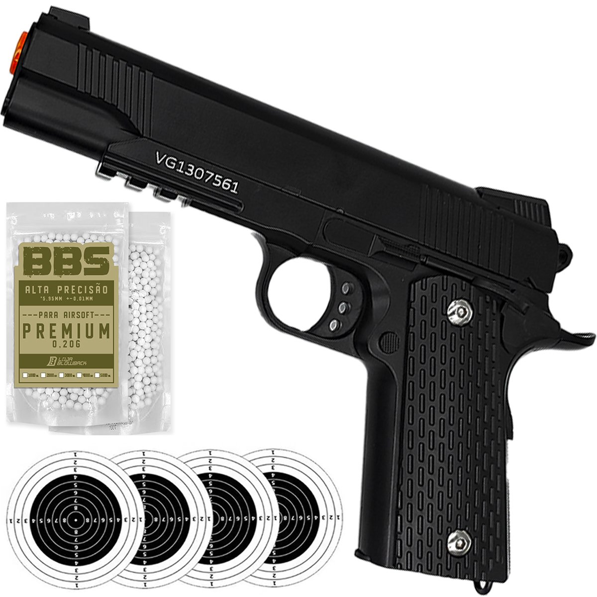 A Pistola Airsoft Rossi VG 1911-V13 BK Metal Spring 6mm é uma réplica realista e durável, com corpo em metal e sistema de ação por mola. Ideal para prática recreativa, combina precisão e excelente custo-benefício.