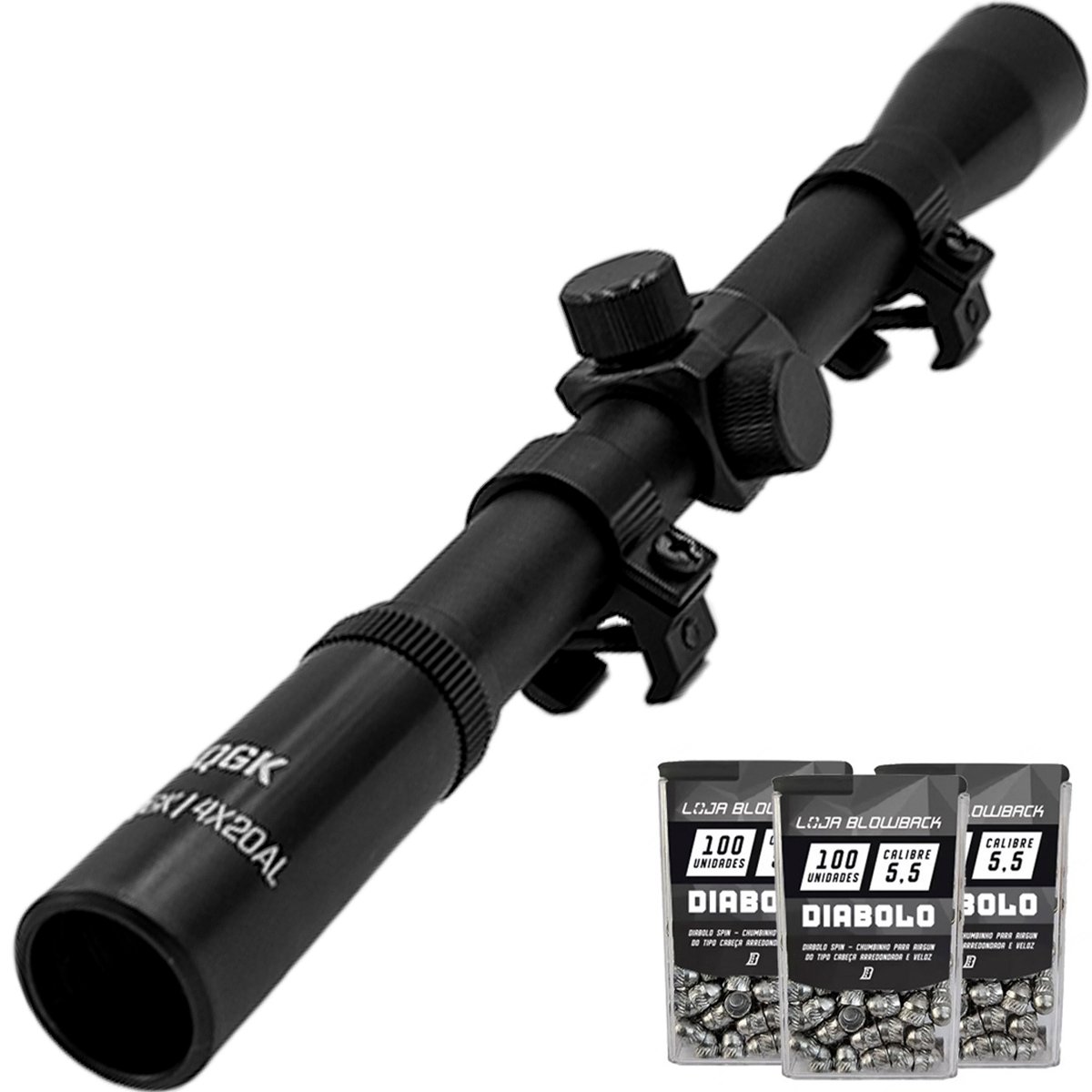 Luneta 4×20 QGK: precisão e durabilidade para tiro esportivo. Com retículo Mil Dot, aumento de 4x e estrutura leve em alumínio, melhora sua performance com facilidade!