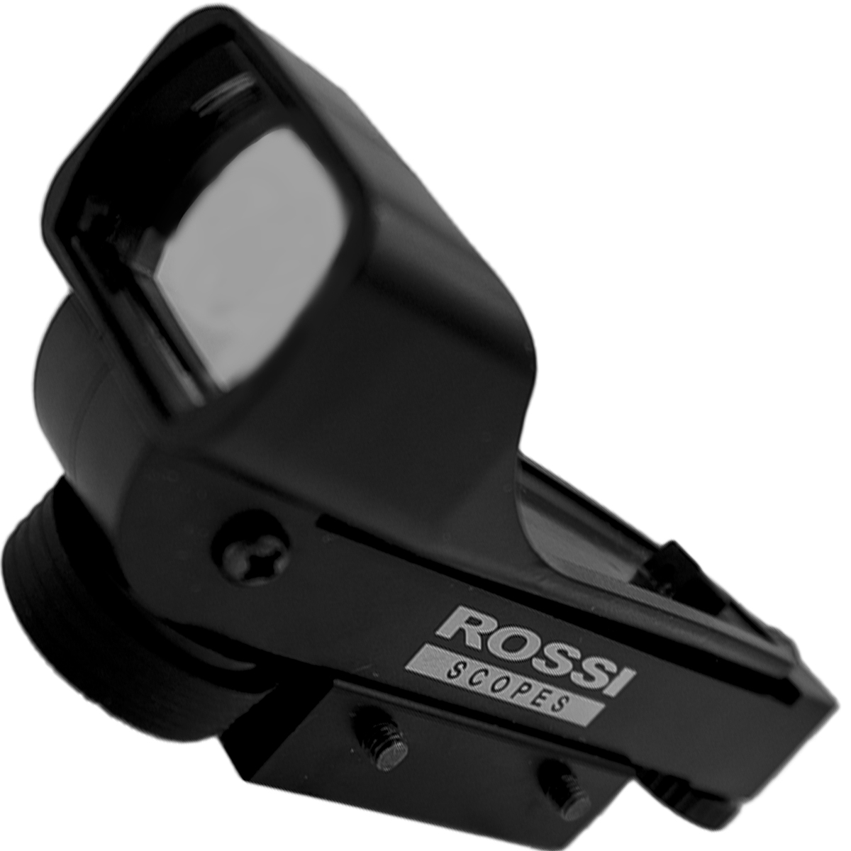 Mira Holográfica Rossi 1x20x30 em alumínio, leve e resistente, ideal para precisão em airsoft. Com retículo luminoso Red Dot, ajuste vertical e horizontal, e montagem para trilhos de 22mm.