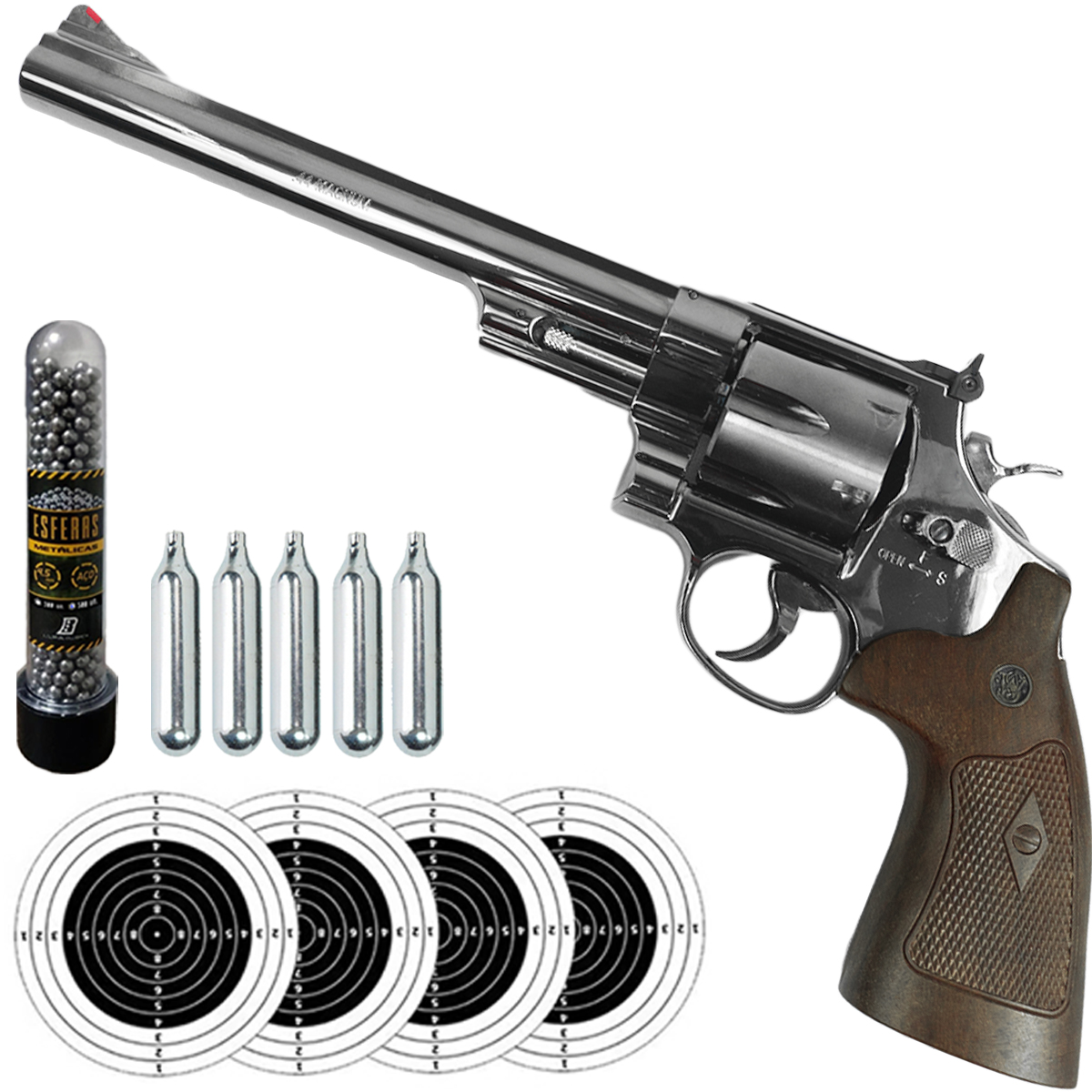 Com uma velocidade de disparo impressionante de 135 m/s (443 fps) e potência máxima de 3 joules, este revólver garante força e eficácia em cada tiro. Para maior segurança, o modelo possui trava de segurança manual e segurança do gatilho, assegurando proteção adicional durante o manuseio.