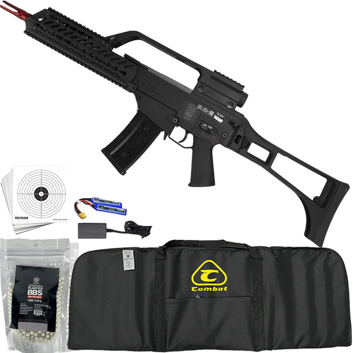 A mira óptica com alcance de 2X e ajuste de mira permite um foco rápido e dinâmico nos alvos, essencial para competições e missões táticas. Equipado com trilho RIS em metal, proporciona robustez e a possibilidade de anexar uma variedade de acessórios adicionais.